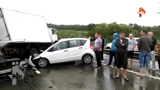 Через некоторое время около сломанного джипа остановился ВАЗ-2106 с украинскими номерами, водитель которого предложил взять "Рендж Ровер" на буксир. Закрепив сцепку, "шестерка" и внедорожник начали движение по полосе, но не проехали и пяти метров, как в них на большой скорости влетела "Газель". От удара "Газель" отбросило в левую полосу, где она столкнулась с "Пежо".