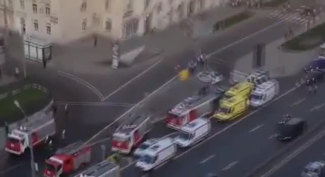 На кадрах запечатлено большое количество пожарных машин и скорых, район оцеплен. Бригада "Мосгаза" не выявила загазованности.