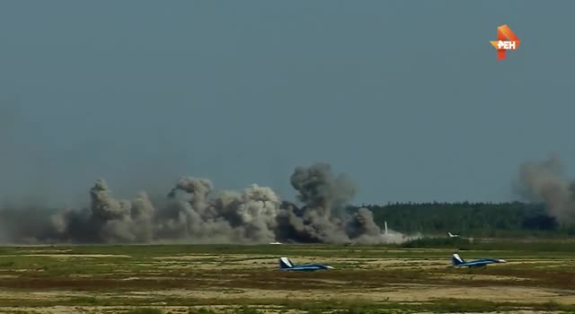 Отмечается, что открытие "Авиамикса" началось с пролета вертолетов Ми-8 с флагами. Затем был показан воздушный бой между двумя парами истребителей Су-30СМ.