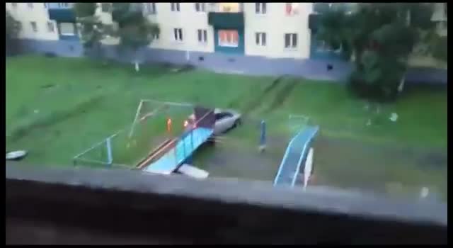 Очевидцы сняли в Поронайске на Сахалине необычную картину. В объектив камеры попал мужчина, последовательно разбивающий свое авто о стену дома, в котором живет его супруга.