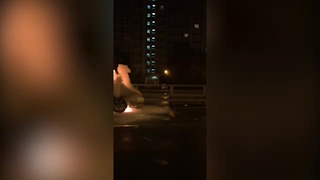 Водитель, скрываясь от погони полицейских, врезался в столб на Рязанском проспекте в Москве. Как рассказал один из очевидцев, машина после удара загорелась.