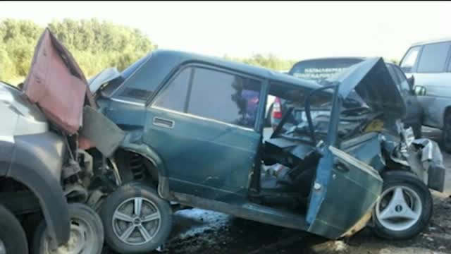 Сразу 12 машин столкнулись под Новосибирском. Очереди из разбитых авто собрались на обеих сторонах трассы. Посреди этого "паровоза" оказался и многотонный грузовик. Он практически смял половину внедорожника. Серьезные повреждения получили ещё несколько легковушек.