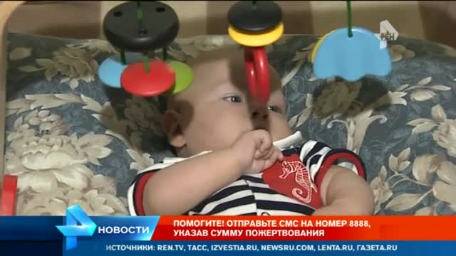 Поэтому, телекомпания РЕН ТВ совместно с фондом World Vita запускает сбор пожертвований, чтобы помочь малышу выздороветь. Помочь спасти жизнь ребенку можно прямо сейчас. Для этого необходимо отправить смс на короткий номер 8888. В тексте сообщения просто укажите сумму, которую хотите пожертвовать. Деньги будут списаны со счета вашего мобильного телефона.