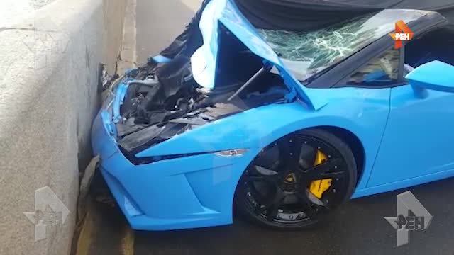 В интернете опубликованы фотографии элитной иномарки Lamborghini Gallardo, которая протаранила BMW на Краснопресненской набережной в центре Москвы.