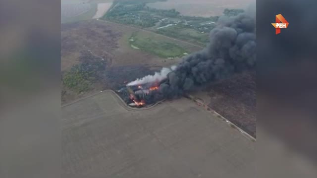 В распоряжении РЕН ТВ появились кадры, которые были сделаны с высоты. На них видно, как огонь распространился по большой территории.