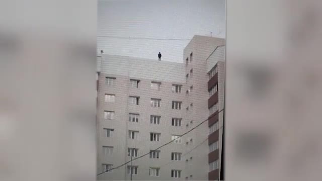 На кадрах видно, что мужчина размахивает руками на крыше и не собирается уходить. По сообщениям местных СМИ, юноша стоял на краю крыши, но затем сорвался. Он сумел зацепиться за край, но вскарабкаться обратно не смог.
