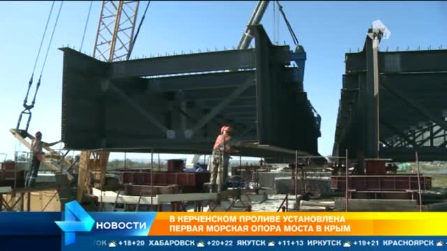 Первую морскую опору Крымского моста установили через Керченский пролив