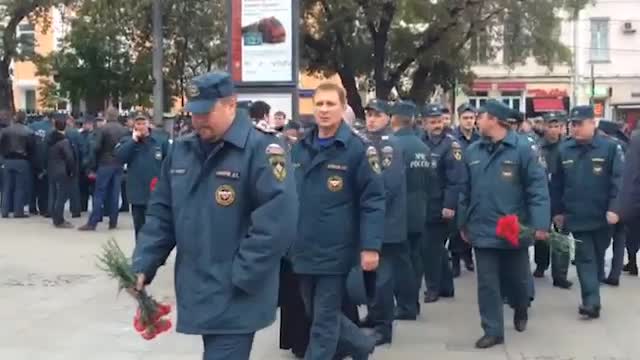 Жители Москвы несут цветы в память о погибших спасателях несут цветы к зданию главка МЧС.