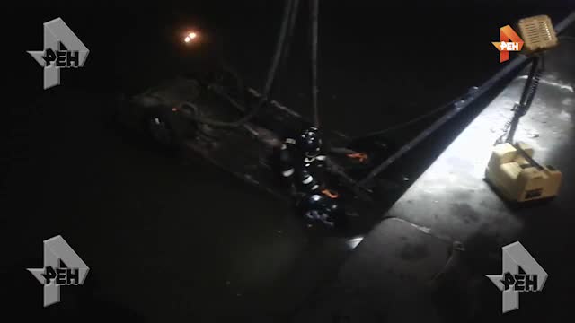 На кадрах ролика видно, как спасатели извлекают автомобиль, который ушел под воду. Сообщается, что пострадавших в результате инцидента нет. Водитель и пассажиры смогли покинуть машину через открытые окна.