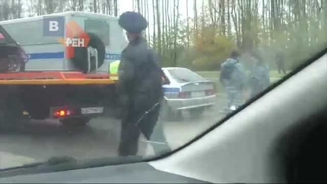 По предварительным данным, в результате аварии пострадали несколько правоохранителей. На кадрах записи видно, что движение автотранспорта на участке, где произошел инцидент, затруднено. На месте работают экстренные службы.