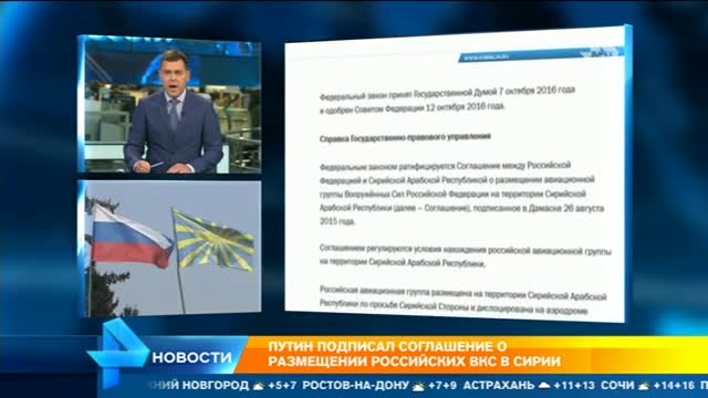 Президент России Владимир Путин подписал закон о ратификации соглашения между Россией и Сирией о размещении авиационной группы ВКС РФ на территории Сирийской Арабской Республики. Об этом сообщает пресс-служба Кремля.