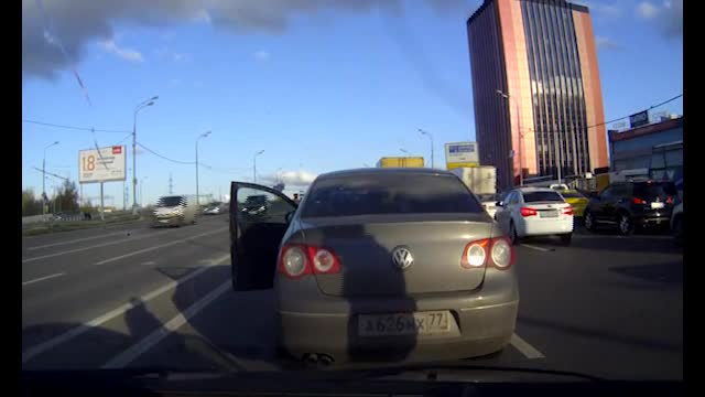 ВодительVolkswagen, несколько раз подрезававтомобиль, остановился, чтобы выяснить отношения.