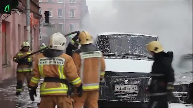 Такси и "Газель" столкнулись и загорелись в центре Петербурга