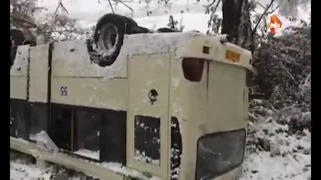 Видео: пассажирский автобус перевернулся неподалеку от Владикавказа
