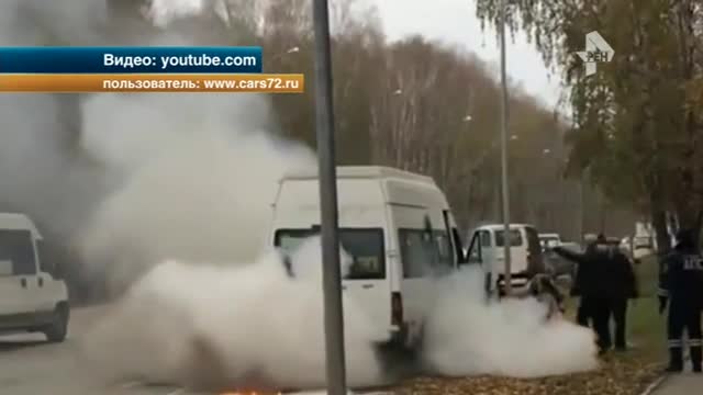 В Тюмени микроавтобус выгорел дотла прямо на оживленной улице. Судя по всему, машина загорелась во время движения. На ролике видно, как из-под авто вырываются языки пламени и густой дым.