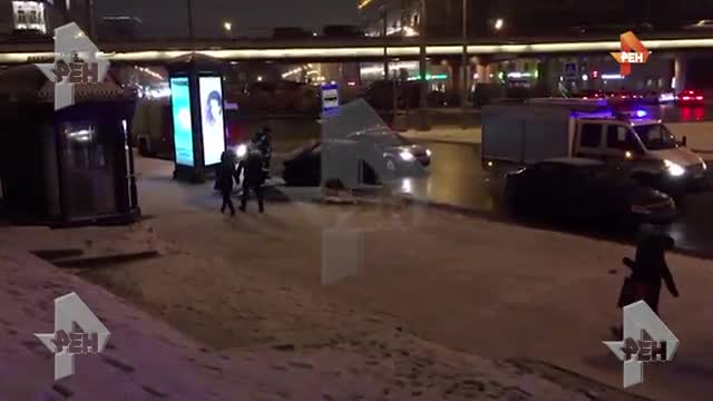 На Олимпийском проспекте в центре Москвы произошло столкновение двух легковых автомобилей KIA и Range Rover. Одна из машин после наехала на препятствие.