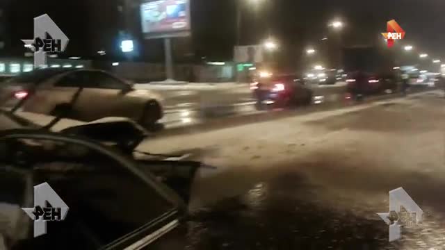 РЕН ТВ публикует первое видео с места крупной аварии на Ярославском шоссе, участниками которой стали четыре автомобиля.