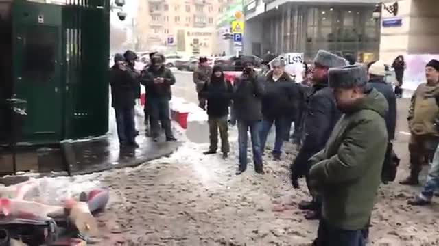 Активисты забросали здание британской дипломатической миссии "окровавленными" манекенами.