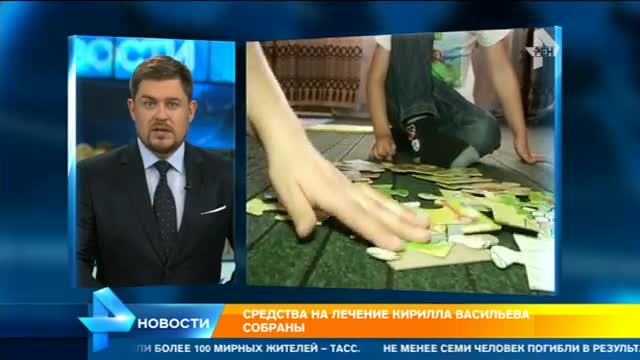 Наши врачи помочь Кириллу не в силах, а на операцию за границей у семьи не было денег. РЕН ТВ и фонд World Vita обратились за помощью к зрителям, и нужная сумма была собрана всего за сутки.