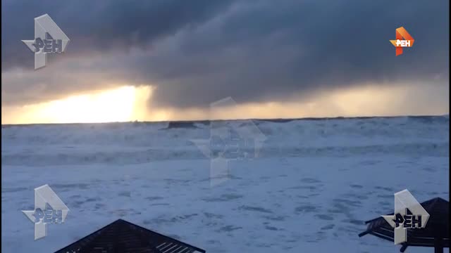 Очевидцы сняли на видео шторм на Черном море, к которому привел обрушившийся на Сочи Ураган. На кадрах видны огромные волны, доходящие до пляжных зонтиков.