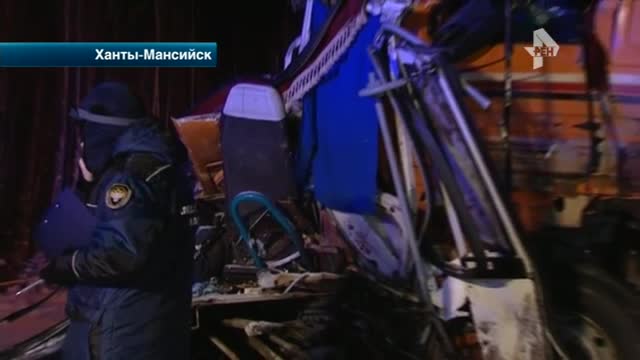 "Водитель автобуса зацепил зеркалом грузовой автомобиль. Соответственно, его развернуло, вывело на встречную полосу. Грузовик врезался в автобус. Практически автобус разорвало на две части", – заявил начальник УМВД России по ХМАО – Югре Василий Романица.