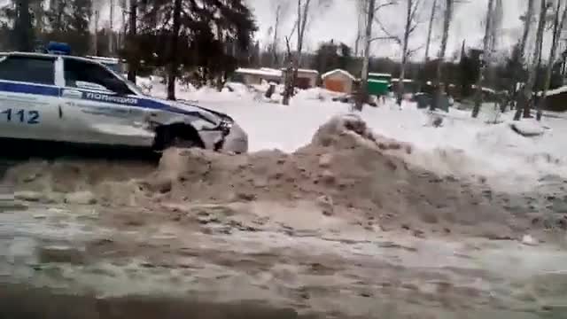 Видео: патрульная машина улетела в кювет после столкновения с иномаркой