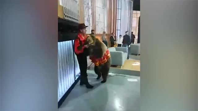Видео: медведица набросилась на девушку на съемках передачи в Москве