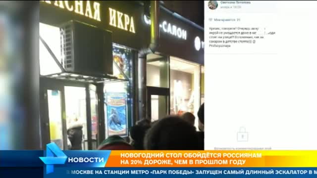 10 человек внутри, а еще 26 снаружи – это один из столичных предновогодних трендов, очередь за красной икрой. И 36 жаждущих – далеко не рекорд. В соцсетях про эти, казалось бы, рудименты прошлого шутят: "Очередь на Серова ушла на новогодний нерест". То ли москвичи красную икру деликатесом особенно не считают, то ли жить без неё не могут. Впрочем, очереди в последние дни декабря сейчас повсюду – от булочных до "икорных". Да и покупательная возможность по стране существенно разнится. И кому-то лук-порей за 238 рублей кило в элитном супермаркете не кажется чем-то сногсшибательным.