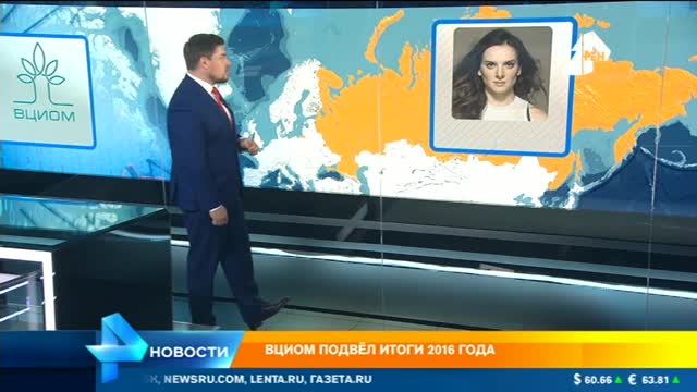 Россияне ответили на вопросы социологов по итогам года. Опубликован рейтинг ВЦИОМ, согласно которому главное мировое событие - война в Сирии, так считает треть опрошенных. На втором месте – президентские выборы в США. За это высказался 31% опрошенных. На третьей – спортивные события – 13 %. Что касается нашей страны, то самыми резонансными для граждан стали прежде всего выборы в Госдуму. Так думают 10 процентов. Далее идет допинговый скандал. А вот борьба с коррупцией в этом рейтинге заняла лишь третью строчку. Политиком года для россиян остается Владимир Путин. Его назвали 64% опрошенных. Далее с большим отрывом идут Сергей Лавров (18%), а также Владимир Жириновский и Сергей Шойгу – по 8%. Лидером рейтинга спортсменов стала Елена Исинбаева. Среди актеров года первое место по популярности заняли Данила Козловский и Сергей Безруков. Ну а самым лучшим фильмом года россияне назвали "28 панфиловцев". Так считает 5% опрошенных. Традиционно спрашивали и об общем настрое россиян. Оказалось, что в 2016-м мы были настроены оптимистичней, чем в прошлом году. Индекс счастья вырос с 60 до 63 пунктов.