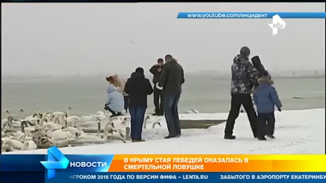В Крыму из-за морозов под угрозой вымирания оказалась стая лебедей. Почти сотня птиц не может выбраться из озера под Евпаторией. Несколько лебедей буквально застряли во льдах. Некоторые уже погибли.