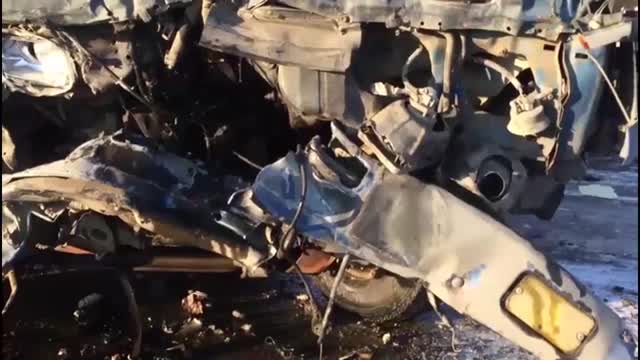 Появилось видео с места страшной аварии на трассе Южно-Сахалинск — Оха. Там скорая столкнулась с двумя фурами. От удара автомобили загорелись. Погибли двое водителей, два пациента и родственница одного из них.