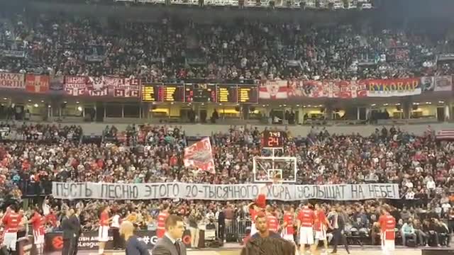 В память о погибших 20 тысяч фанатов сербского баскетбольного клуба "Црвена Звезда" перед игрой с российским ЦСКА исполнили песню и растянули баннер с надписью: "Пусть песню этого 20-тысячного хора услышат на небе!".