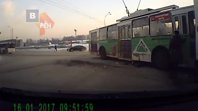 Видео: в Кемерове троллейбус на скорости протаранил маршрутку