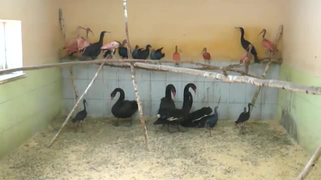 Спасенная пара черных лебедей, возможно, даст потомство в Парке птиц в Калужской области.