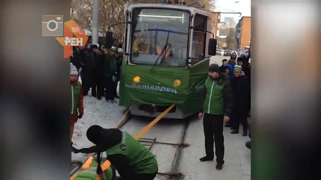 Видео: иркутянка Кошелева установила мировой рекорд, сдвинув два трамвая с пассажирами