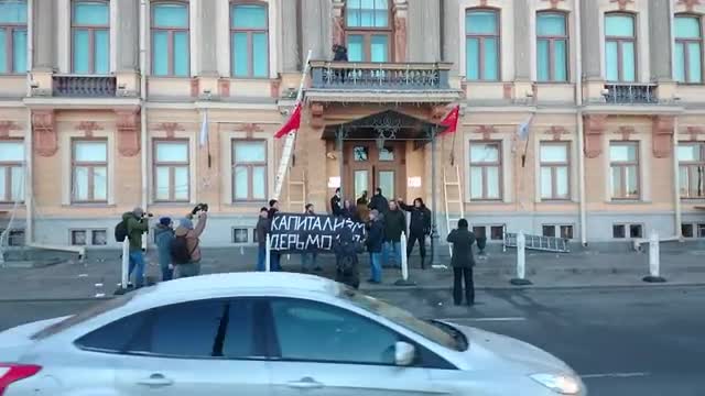 Видео: Нацболы атаковали офис "Газпрома" в Петербурге