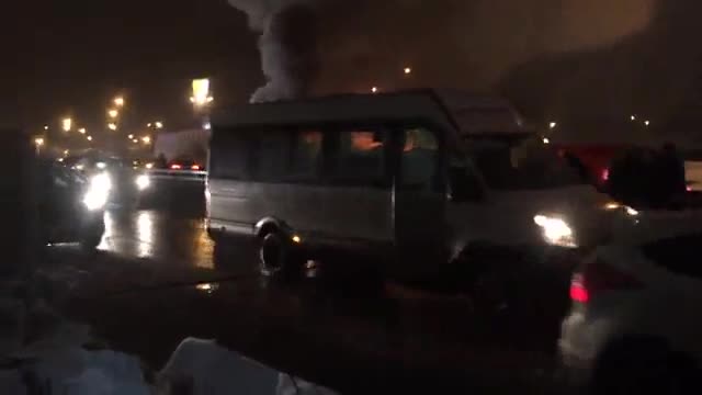 Прибывшие на место сотрудники МЧС потушили пожар. Движение транспорта на участке сильно затруднено.