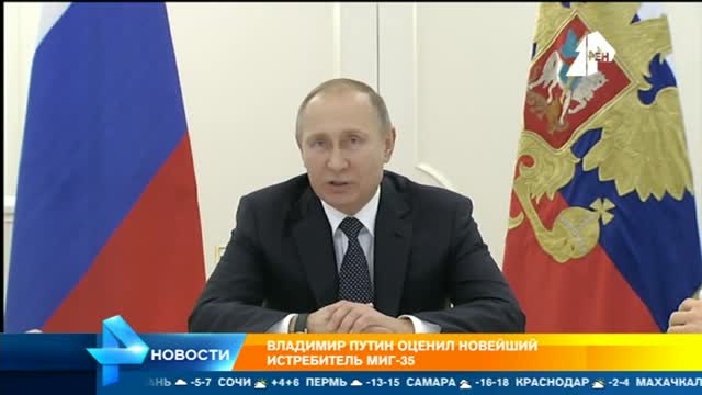 Главе Российской Федерации Владимиру Путину во время видеоконференции с корпорацией "МиГ" продемонстрировали возможности нового истребителя МиГ-35, сообщает ТАСС. По словам российского лидера, серийные закупки нового судна начнутся в 2019 году.