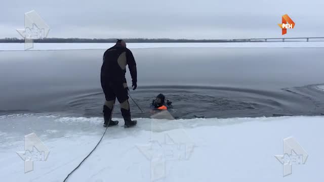 В распоряжении РЕН ТВ появилось видео проведения поисковых работ по поиску тела 8-летней девочки, провалившейся под лед Волги под Саратовом.