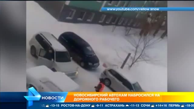 В Новосибирске автохам набросился на сотрудника коммунальных служб из-за перекрытого проезда. Водитель иномарки попытался заехать во двор одного из домов, но не смог, так как там появился знак объезда.
