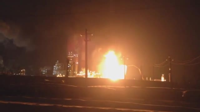 Сегодняшней ночью крупный пожар произошел на нефтяном заводе в Уфе.