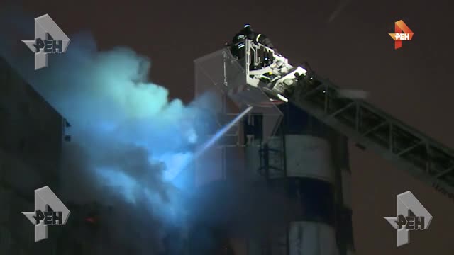 Видео с места пожара на складе с пластиковыми изделиями в Москве