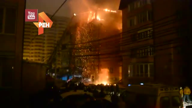 За это время пламя уничтожило верхний этаж здания и перекинулось на пятый. Как говорят жильцы, причиной задержки приезда спасателей стали припаркованные авто, из-за которых машина пожарных не смогла близко подъехать к зданию.