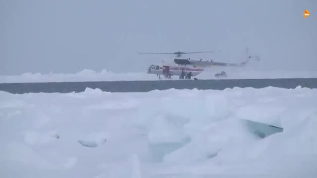 На кадрах, предоставленных ГУ МЧС России по Сахалинской области, видно, что рыбаков спасали с помощью вертолета.
