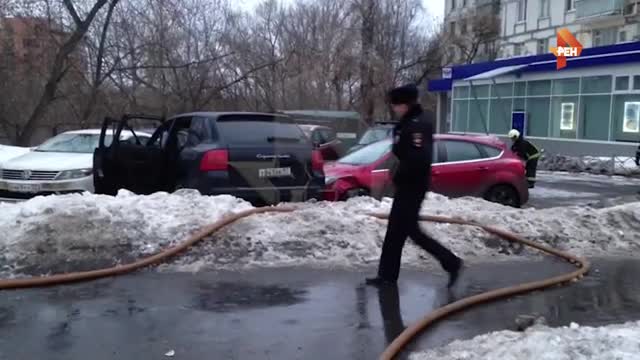 Как сообщает источник РЕН ТВ, автомобилист, совершив наезд на человека, и проехал с ним на капоте еще порядка 100 метров. Затем машина врезалась в машины на парковке, после чего авто загорелось