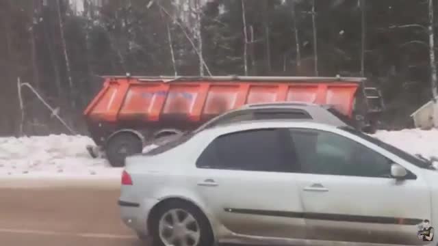 Видео с места ДТП, где фура перевернулась и улетела в кювет в Подмосковье