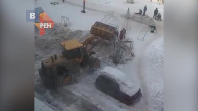 Видео: тракторист чуть не убил детей на площадке глыбами льда