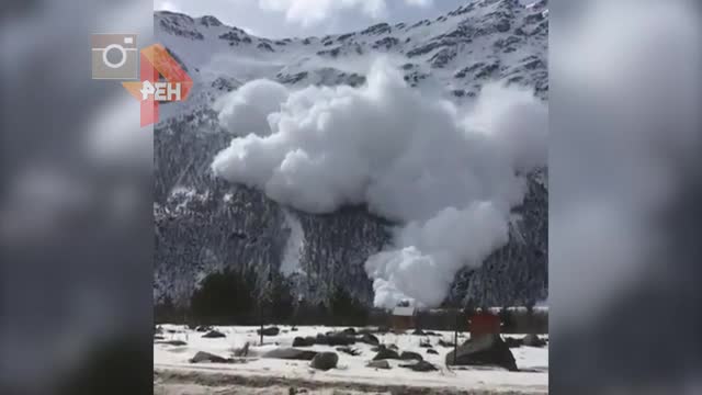 Видео схода лавины, накрывшей группу лыжников на горе Чегет