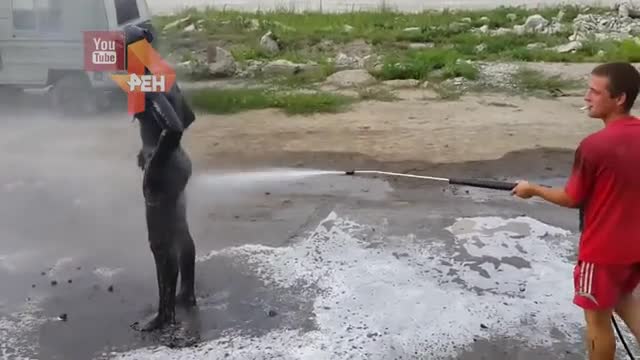 При этом мужчина не мог похвастаться нормальным самочувствием после мазутного заплыва. Он начал жаловаться, что ничего не видит и ему трудно дышать. В ответ друзья попытались отмыть пловца водой.