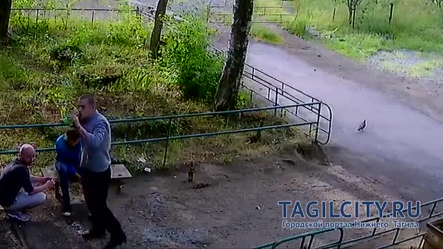 В какой-то момент в произошедшее вмешивается один из местных жителей. По данным портала, молодые люди ответили мужчине, что у них все хорошо, а затем собрали осколки бутылки, разбившейся во время падения, и увели покалеченную даму.
